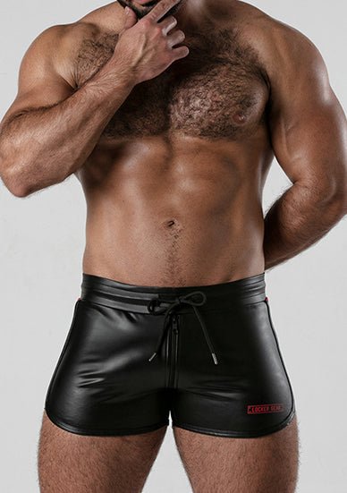Quality and kink combine in the Locker Gear Backroom 2 Way Zipper Short Red. Black Leatherette body with contrast colour side panles, we think they are perfect for the club and bound to get you noticed.