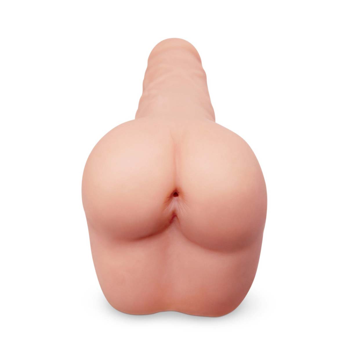 A textured masturbator with a pair of perfectly round ass cheeks connected to a thick 6 inches cock.