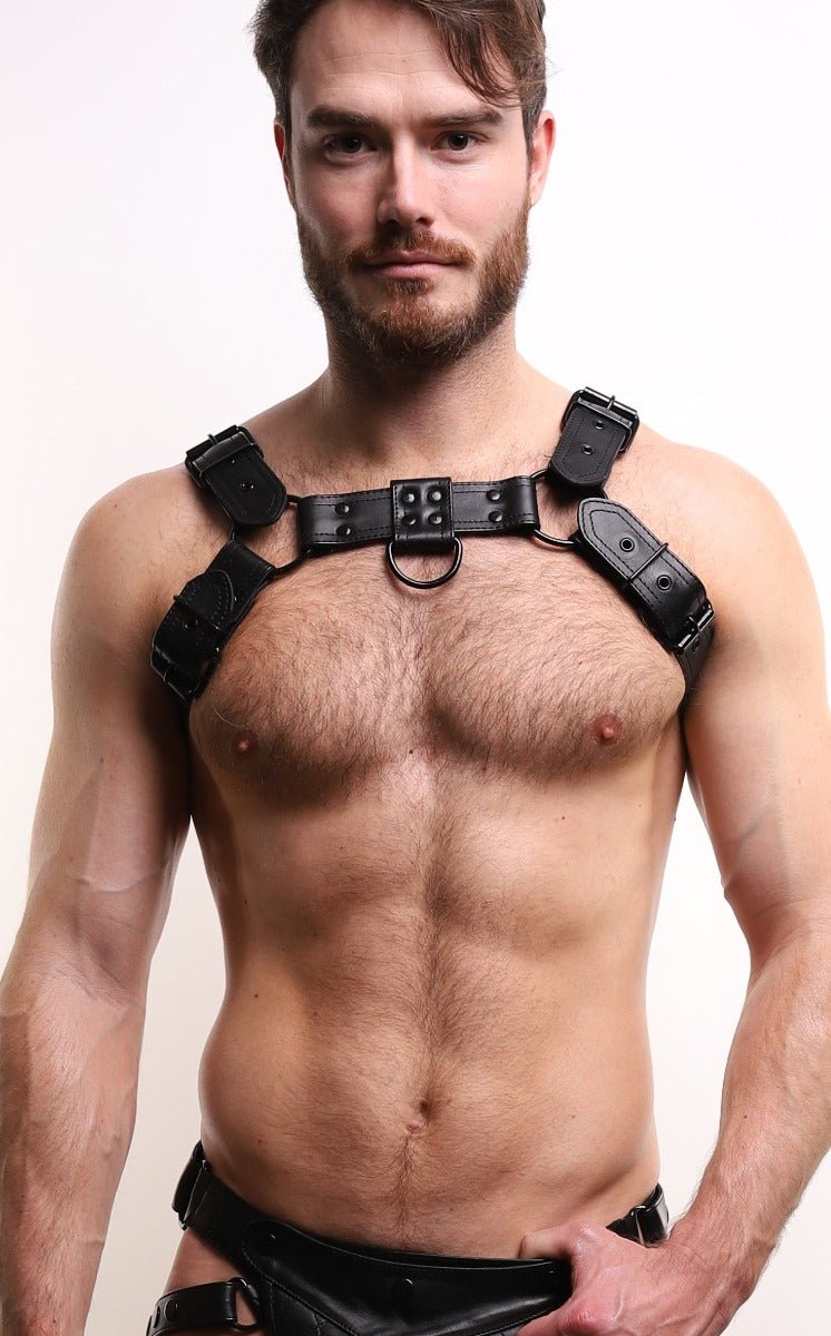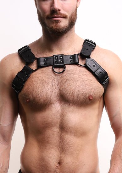 Tell em how you like it with the ruff GEAR RAW Leather Bulldog Harness Black. Sexy and sleek, this harness is perfect for the club, house party, or bedroom play. Black hardware against the black leather creates a clean Made from calf leather with a double stitch to finish, not only is this a stylised piece, but also super durable..