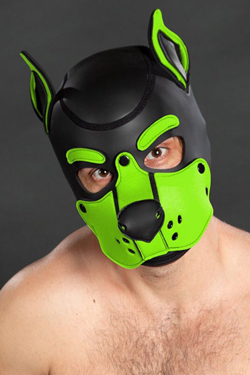 Mr S Leather Neoprene K9 Puppy Hood Black Lime
